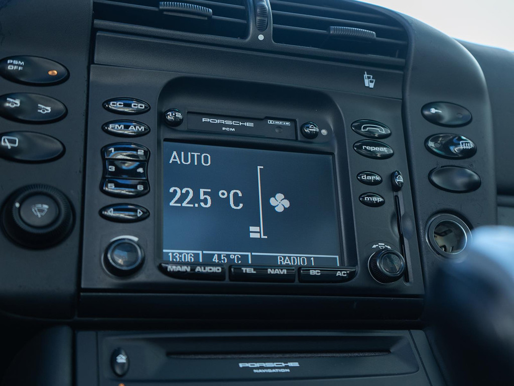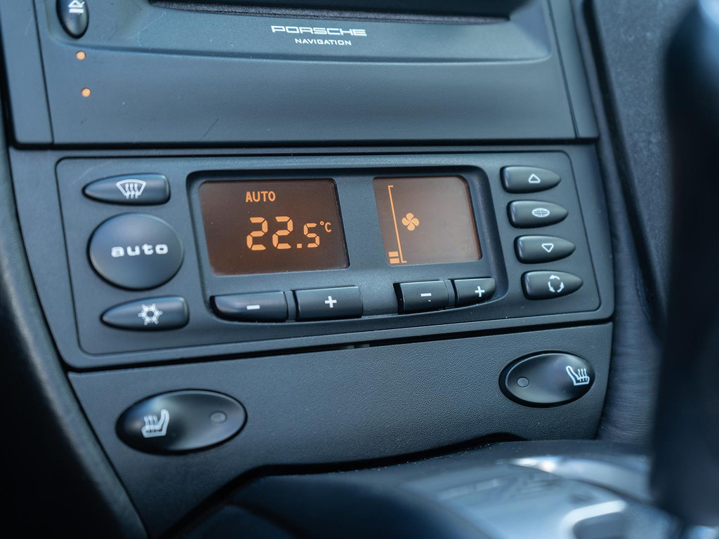 Ook is de auto voorzien van electronic climate control. Een paar spetters of een donderbui? De regensensor weet het als eerste en reageert precies goed! De uitrusting van deze Porsche is met centrale deurvergrendeling met afstandsbediening, boordcomputer en verstelbaar stuur behoorlijk compleet.